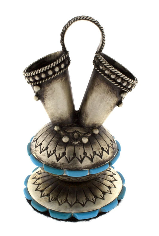 Vaso Nuziale Miniatura Nativo Americano Con Inlay In Rilievo In Turchese Kingman
