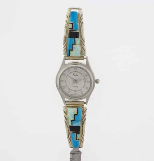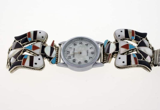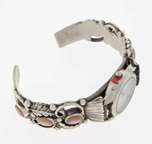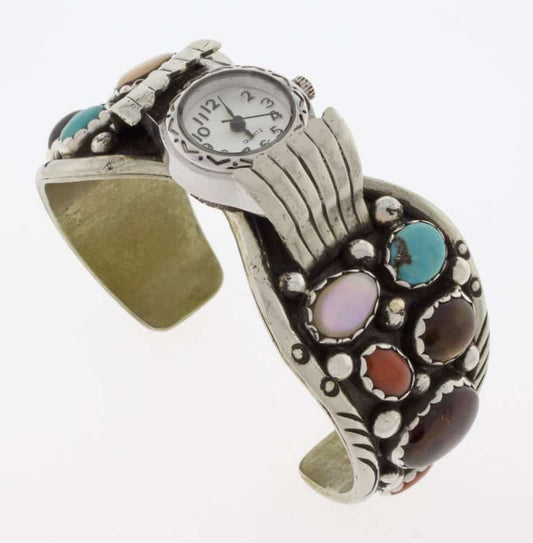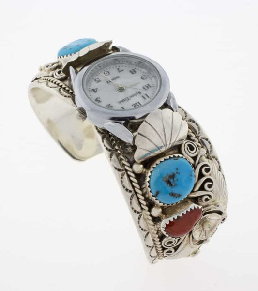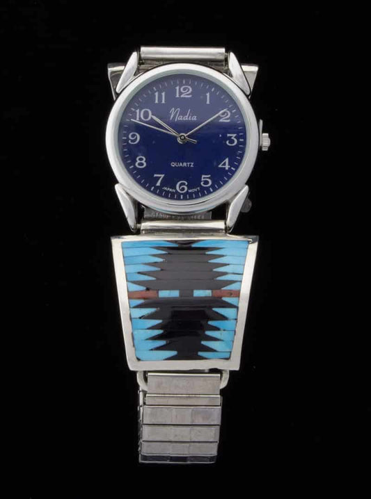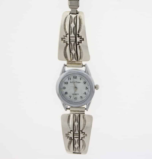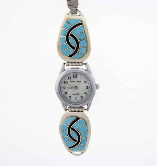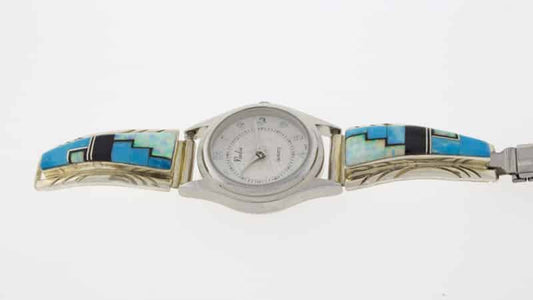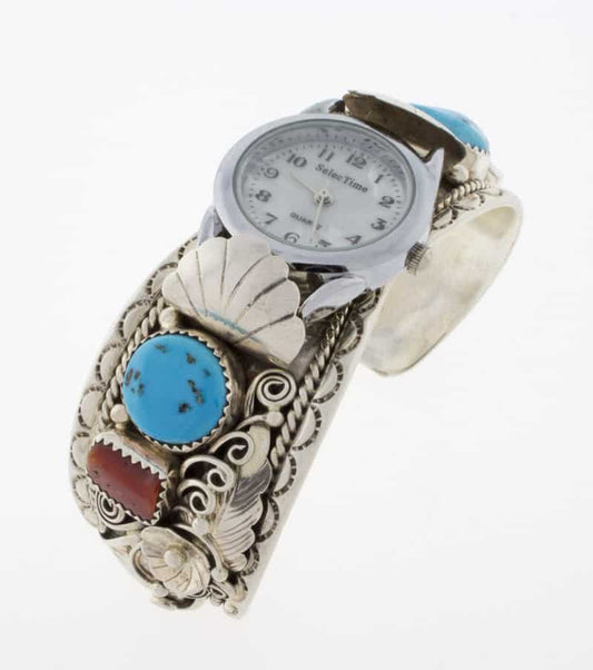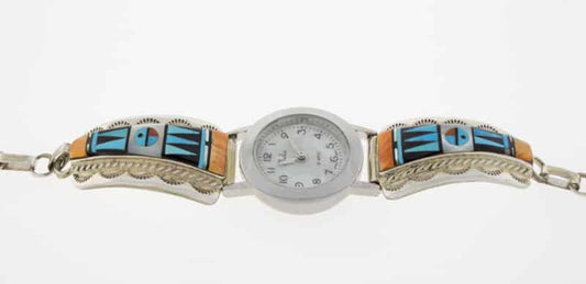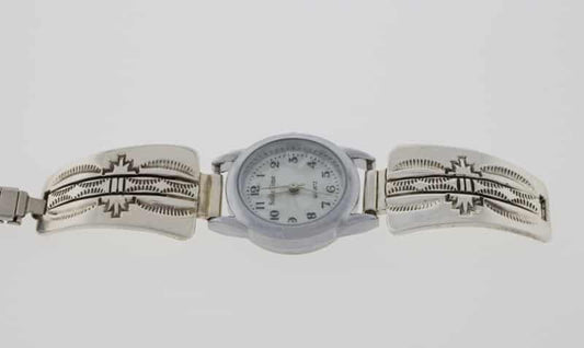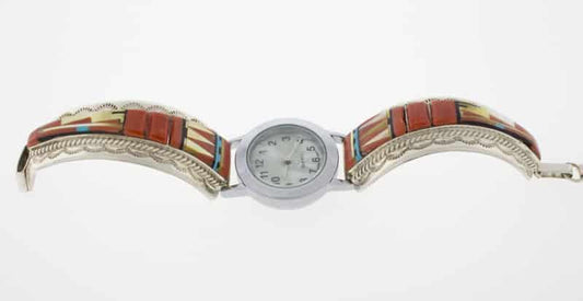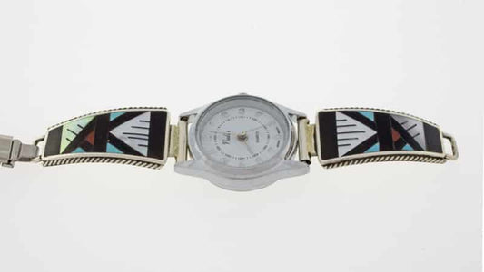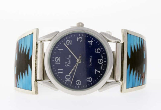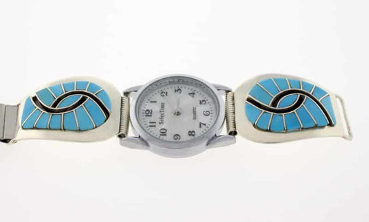 Native American watch bracelets combine functionality and style. They are often made from sterling silver and frequently include turquoise. Many come with hand-stamped patterns or inlay work, both of which are traditional design techniques originating from the Southwest.