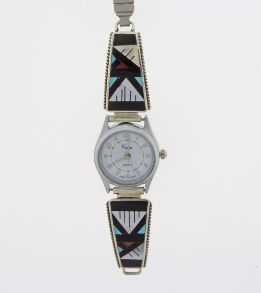 Amy Wesley is a Zuni artist who started silversmithing in 1976. She is known for her precise inlay work, with clean, bold lines. Her favorite design to use is the hummingbird design, which she incorporates into watch tips, earrings, and pendants. If you have an appreciation for minimalist art, you will resonate with Amy Wesley's work.