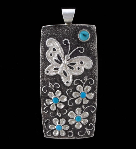 Pendente a farfalla in tufa con turchese naturale di Bisbee