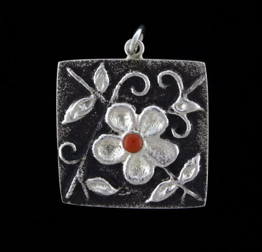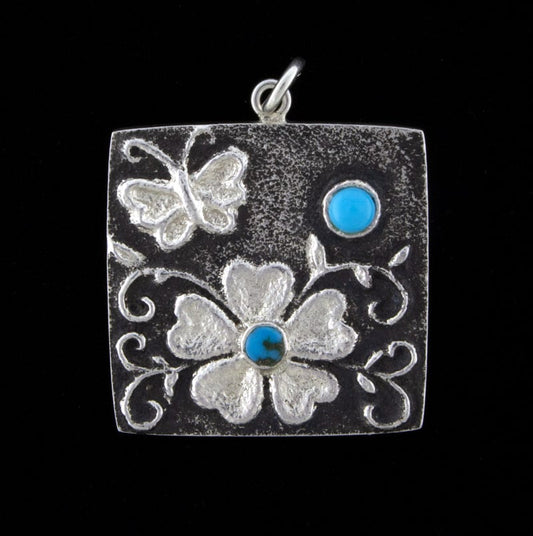 Rebecca creates pieces inspired by her love of nature. Her jewelry features designs of flowers, leaves, and butterflies and is made by pouring molten silver into hand-carved molds made from tufa rock.