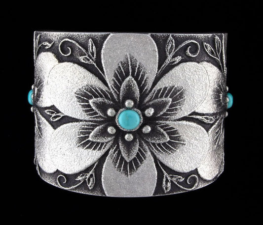 Bracciale a fiori in tufa con turchese naturale chiaro Lone Mountain