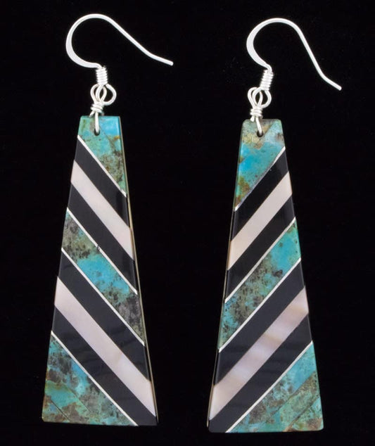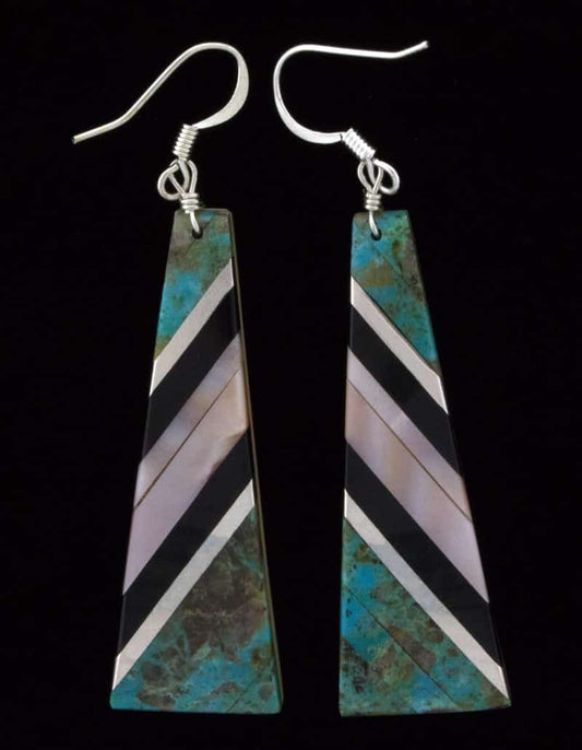 SilverTQ’s inlay earrings and pendants showcase the exceptional skills of the artists they represent. These jewelry pieces feature hand-cut turquoise, coral, jet, and other natural gemstones set in sterling silver or inlaid on top of a shell. They display bold geometric patterns and symbolic motifs, which are the distinguishing characteristics of Pueblo craftsmanship. From classic dangling earrings to contemporary pendant designs, each piece uses traditional Pueblo jewelry-making techniques.