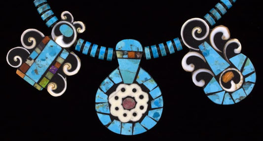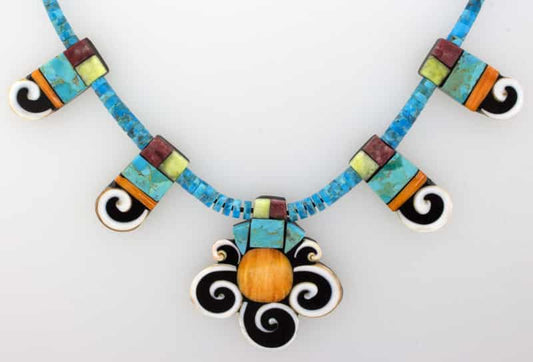 Santo Domingo Pueblo jewelry embodies the cultural and historical identity of this Pueblo tribe. The tribe is known for its unique jewelry pieces that reflect centuries of tradition and artistic expression. Pueblo jewelry-making dates back to around 200 AD. Early artisans crafted jewelry from natural materials readily available in their environment, like shells, stones, and plant fibers. Over time, their jewelry-crafting techniques also evolved. Influenced by Spanish colonization, Pueblo artisans began introducing metalwork into their designs, leading to a new age of creativity. Today, Santo Domingo Pueblo jewelry continues to be celebrated for the use of natural materials, clean geometric patterns, animal motifs, signature heishi beads, and mosaic inlay.