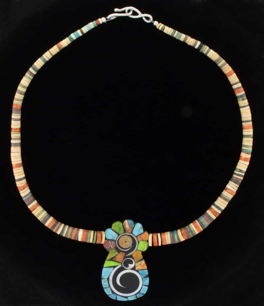 Gerard and Mary L. Calabaza are a couple known for their statement heishi bead jewelry. They are a husband and wife duo who specialize in blending traditional and contemporary styles in their pieces. Gerard and Mary come from families steeped in jewelry-making traditions and learned the craft from their parents at a young age. Carrying their family legacy forward, the couple has dedicated their lives to making high-quality, authentic Pueblo jewelry.