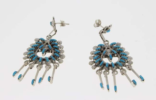 Needlepoint and petit point are signature Zuni techniques known for their intricacy and delicacy. Needlepoint involves long and slender stones set in radiating or geometric patterns, while petit point uses small and rounded stones arranged into floral or clustered motifs. These labor-intensive methods require extraordinary skill, making each finished piece a work of art. SilverTQ’s collection includes earrings, pendants, and cuffs that highlight this distinctive artistry.