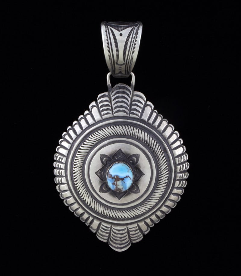 "Old Style" Ingot Sterling Silver Concho Style Pendant Set Con Una Pietra Naturale Di Turchese Golden Hill. Realizzato A Mano E Progettato Dal Artista Navajo CALVIN MARTINEZ.