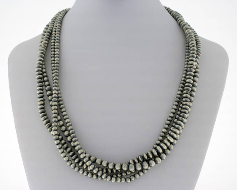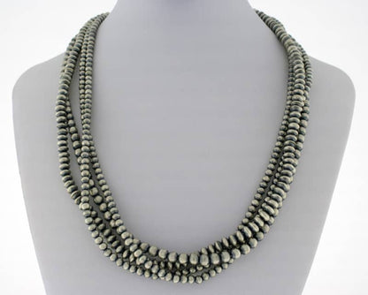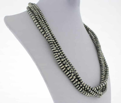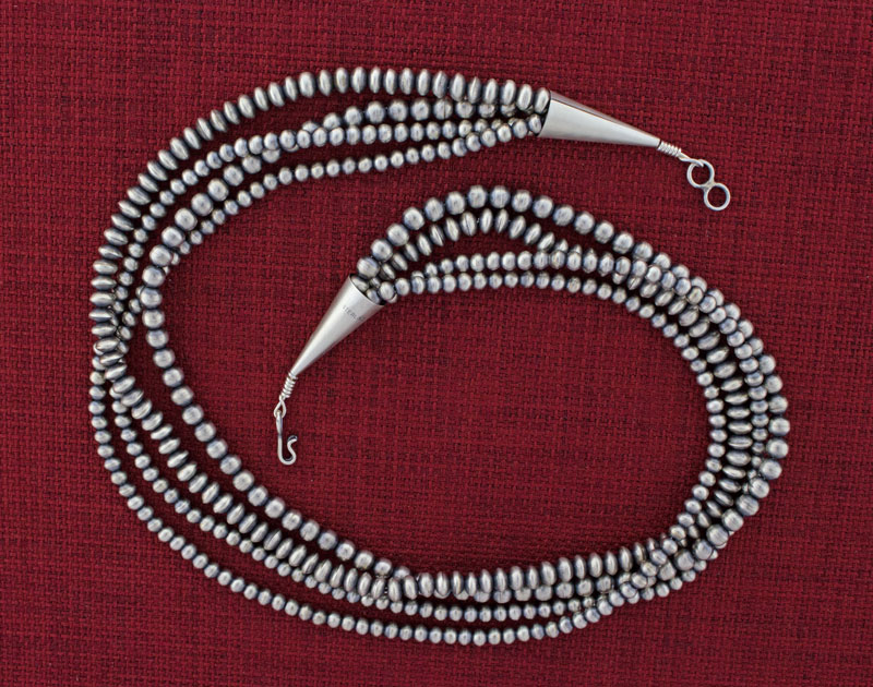Collana di perle in argento sterling "Old Style" a 4 fili di 20" di lunghezza, realizzata a mano magistralmente dall'artista Navajo defunto JAN MARIANO.