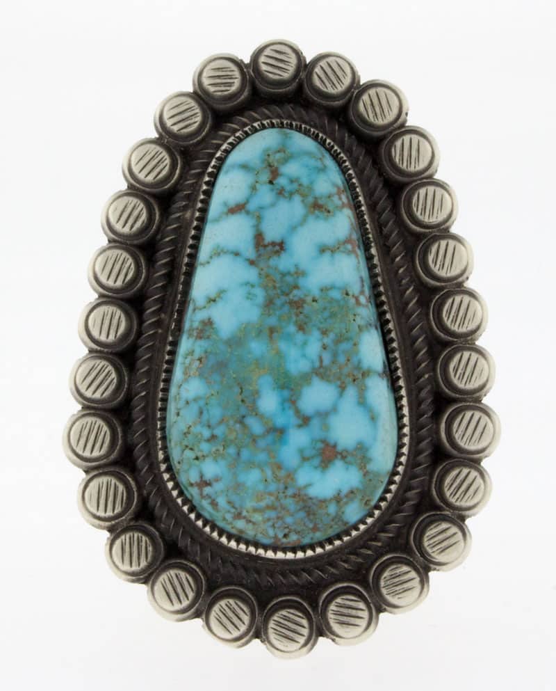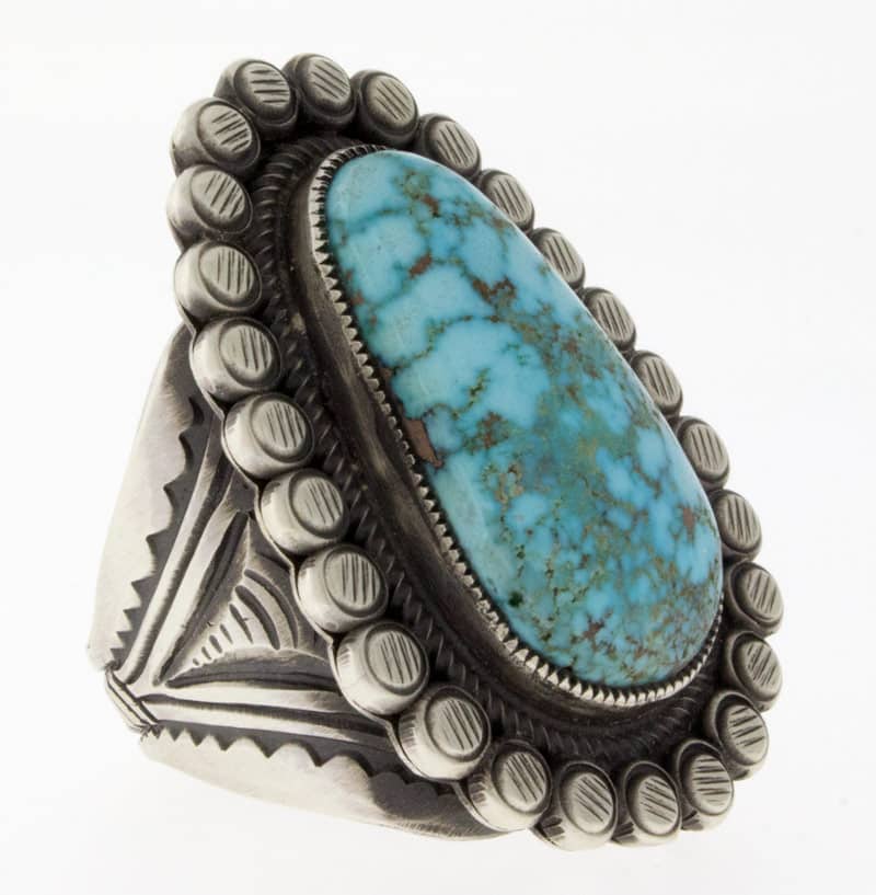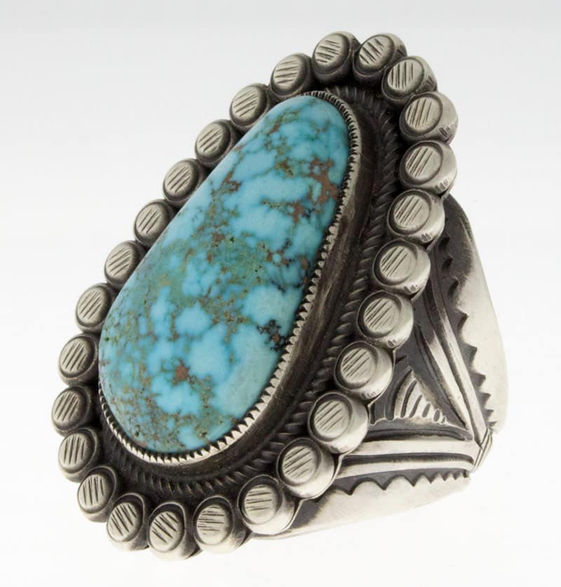 Anello in argento sterling da 10,5 con pietra di turchese naturale Kingman Water Web. Realizzato a mano e progettato dal artista Navajo CALVIN MARTINEZ.