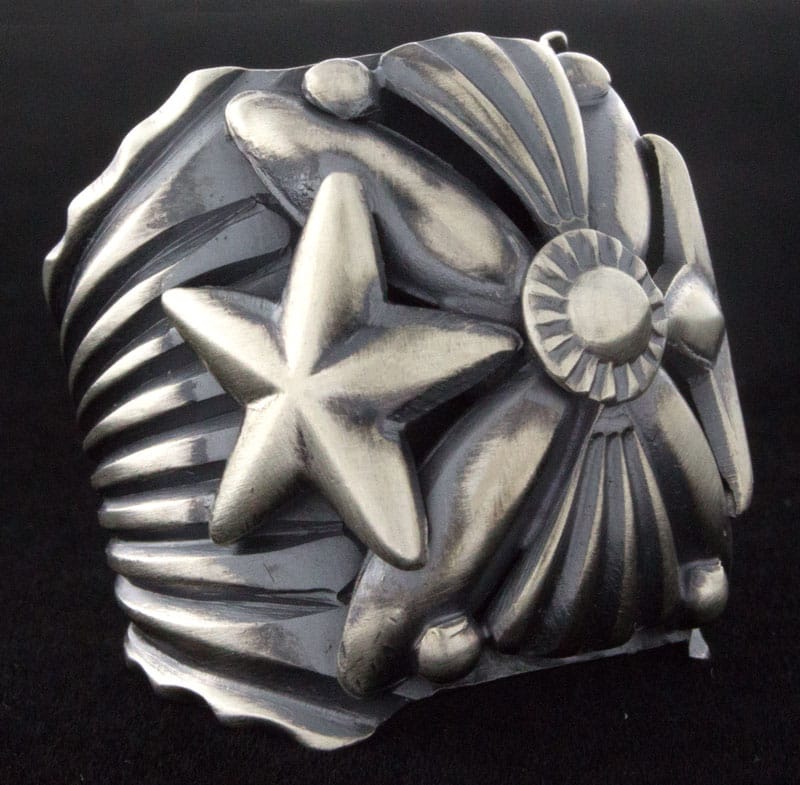 • Technique: Saw Work, Stamp Work, Appliqué, Repoussé, Satin Finish, Oxidized Background