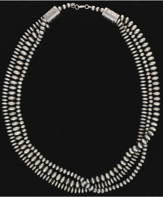 手作り 3連 スターリングシルバー ビーズ ネックレス