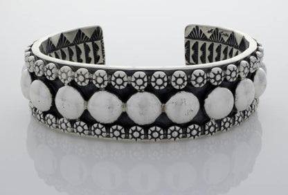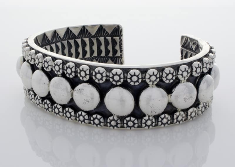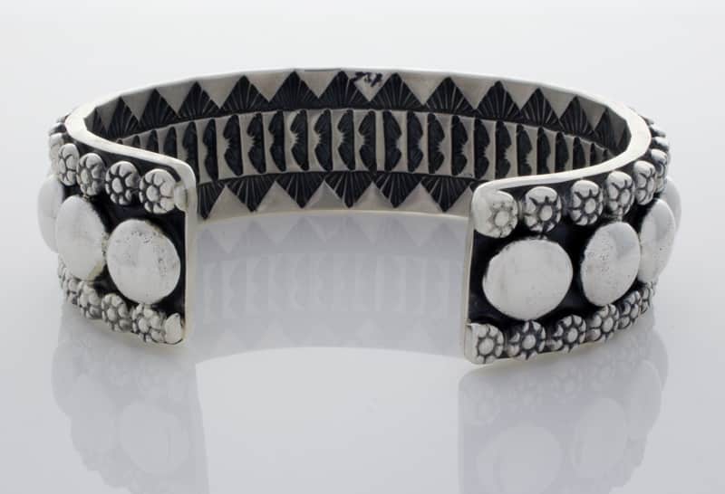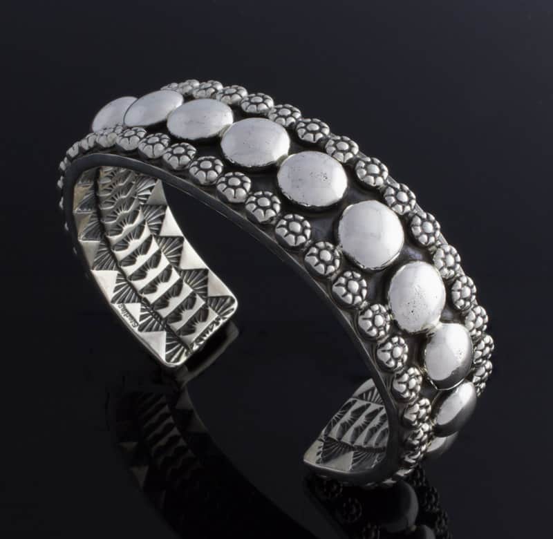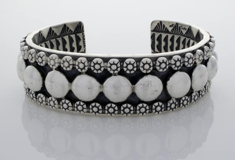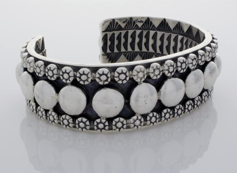アパッチ族のアーティスト、マーク アンティアが巧みにハンドメイドしデザインした、厚手のソリッド スターリング シルバー ブレスレット。