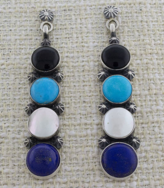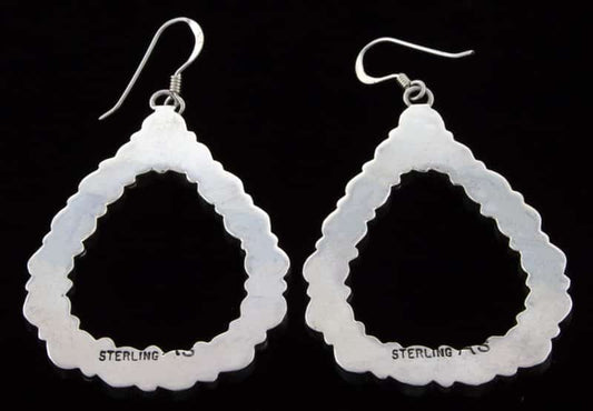 高品質の天然クラウドマウンテンターコイズレイズドコブルストーンインレイイヤリング