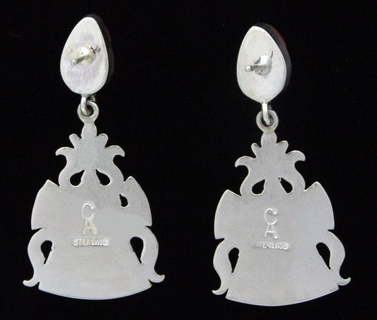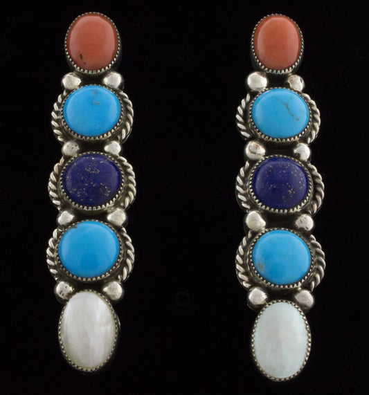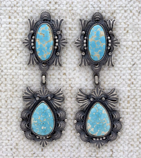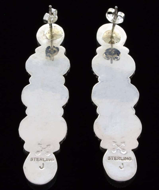 高品質の天然クラウドマウンテンターコイズレイズドコブルストーンインレイ「セイルボート」イヤリング