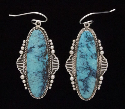 大きな楕円形のスターリングシルバーキングマンターコイズイヤリング