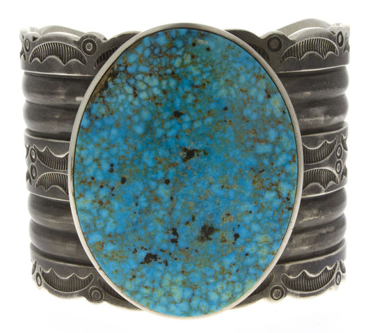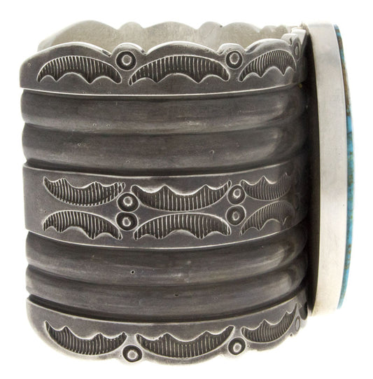 Delbert Gordon was born in 1955. The self-taught Navajo silversmith is originally from Houck, Arizona, and grew up in Tohatchi, New Mexico. Delbert has been silversmithing since he was 17 and creates his own designs, establishing his reputation as one of the best designers who work in the traditional style. His stamp work in plain silver and use of natural turquoise contribute to the popularity of his beautiful designs.