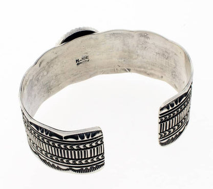 天然のバレーブルーネバダターコイズストーンをセットした「オールドスタイル」のスターリングシルバーブレスレット。ナバホ族のアーティスト、ハロルド・ジョーによる見事なハンドメイドとデザインです。