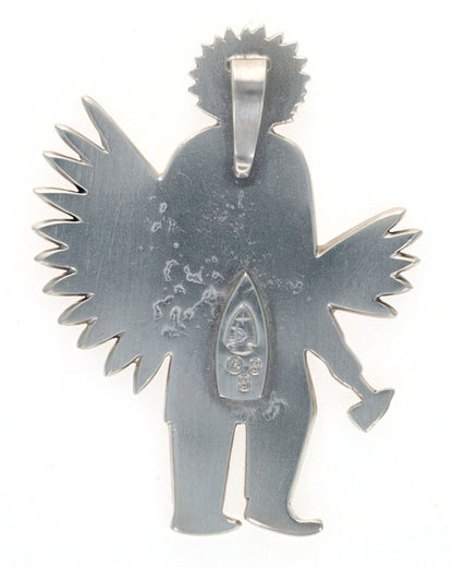 トゥファストーン鋳造スターリングシルバー伝統的なノーザンダンサー ペンダントセット、高品質の天然ローンマウンテンターコイズストーン付き。ナバホアーティストDARRYL DEAN BEGAYによる熟練の手作りとデザイン。