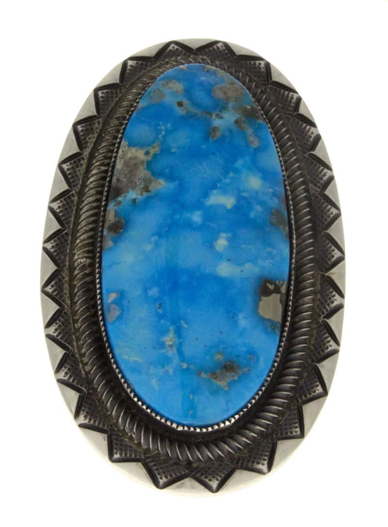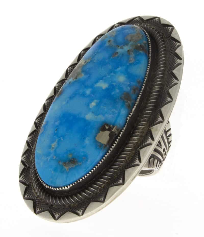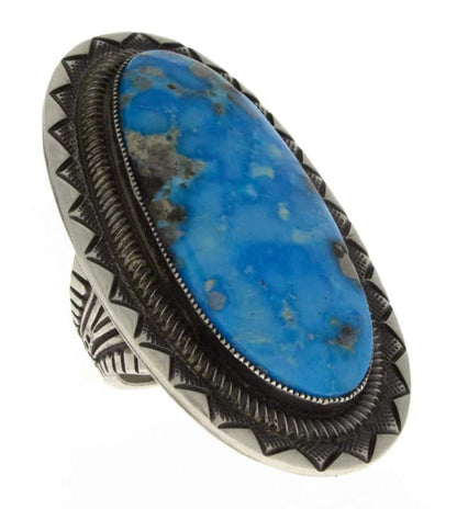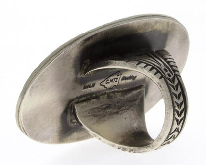 Size 8.75 "Old Style" Ingot Sterling Silver Ring Set With A Large Oval Shaped Desert Rose Turquoise Stone.  Masterfully Handmade And Designed By Navajo Artist CALVIN MARTINEZ.