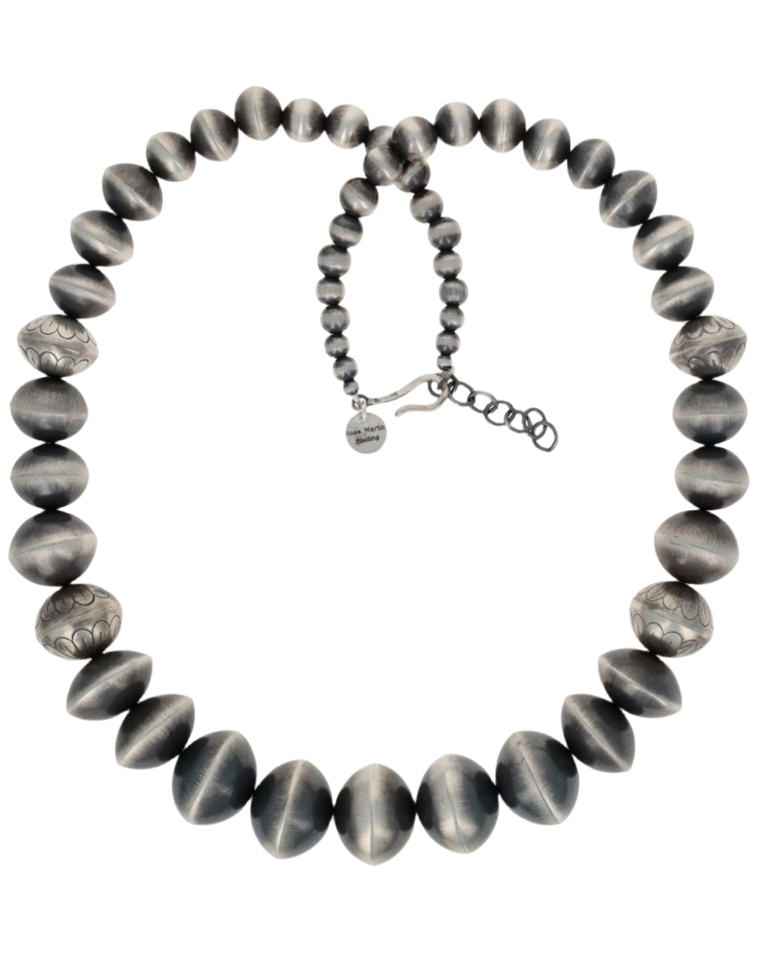 25" - 26.5" Adjustable Length "Old Style" Graduated Sterling Silver Bead Necklace.  Masterfully Handmade, Hand Stamped And Designed By Navajo Artist ROSE MARTIN.