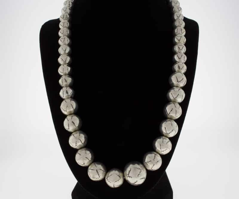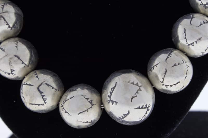 21.75" Length Graduated Sterling Silver Bead Necklace Masterfully Handmade And Designed By Deceased Navajo Artist  JAN MARIANO.