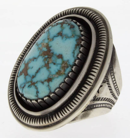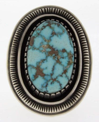 Size 10.75 Heavy Gauge "Old Style" Ingot Sterling Silver Ring Set With A High Grade Natural Kingman Water Web Turquoise Stone.  Masterfully Handmade And Designed By Navajo Artist CALVIN MARTINEZ.