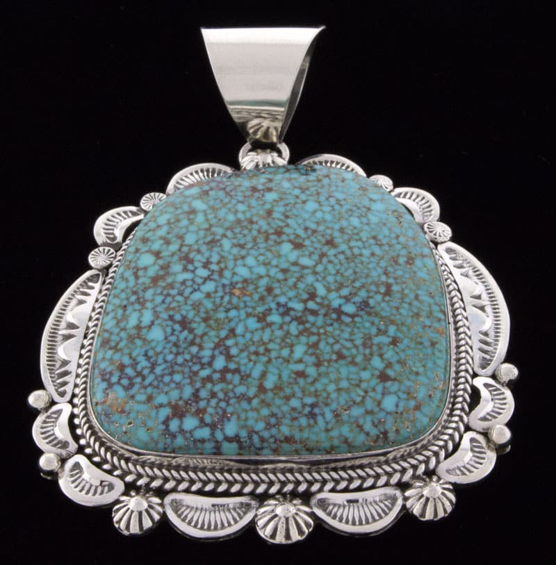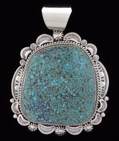 Sterling Silver Pendant Set With An Impressive High Grade Natural Kingman Web Turquoise Stone Mined Circa The 1980's Period.  Masterfully Handmade And Designed By Navajo Artist ELLA M. LINKIN.