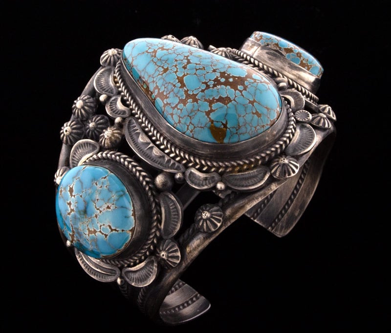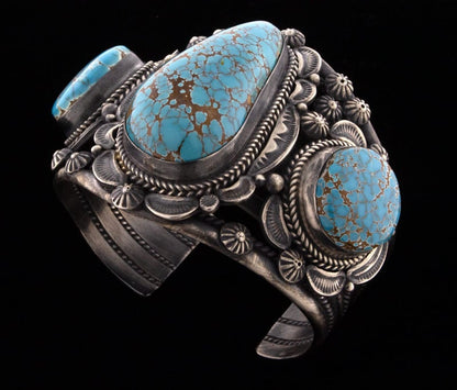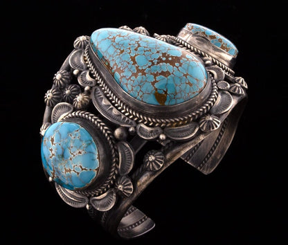 High Grade Natural Pilot Mountain Turquoise 3-Stone Row Bracelet