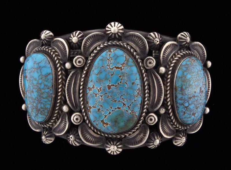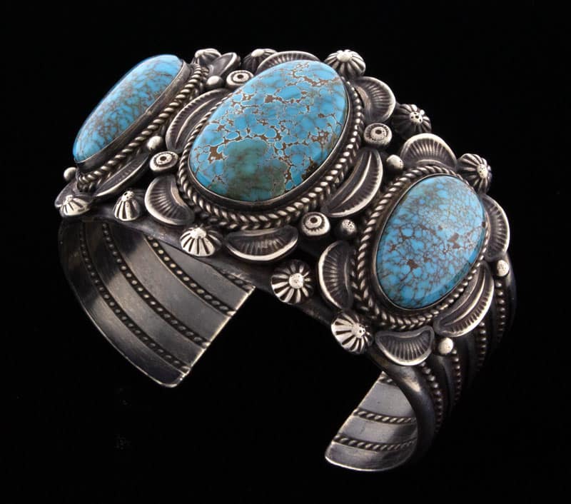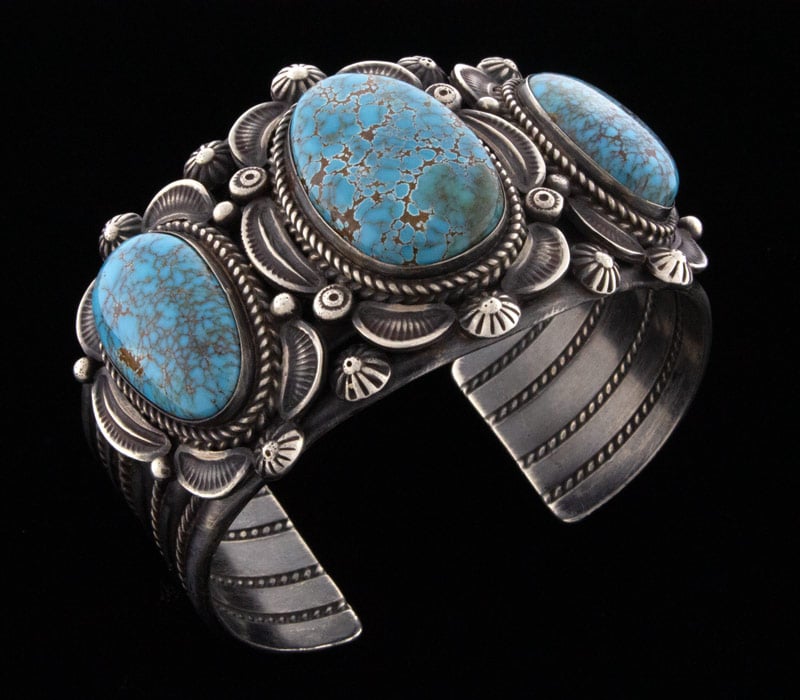 High Grade Natural Pilot Mountain Turquoise 3-Stone Row Bracelet