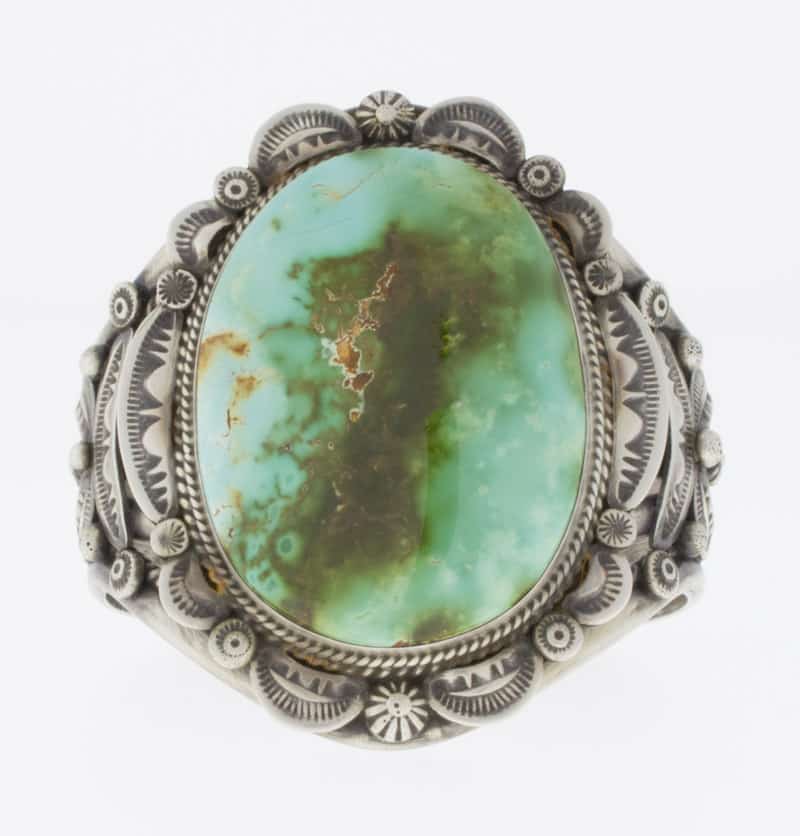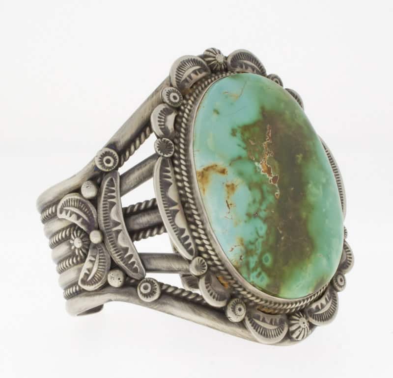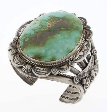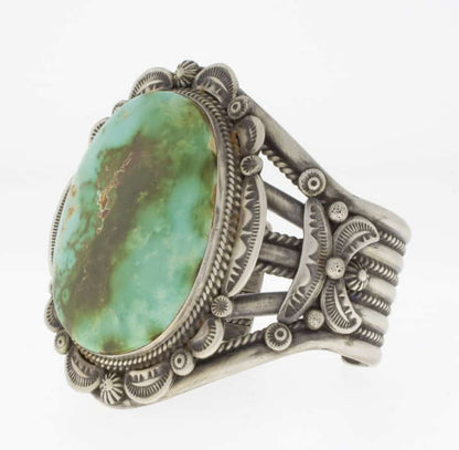"Old Style" Sterling Silver Bracelet Set With An Impressive High Grade Natural Royston Turquoise Mined And Cut Circa The Early 1980's.  Masterfully Handmade And Designed By Navajo Artist ELLA M. LINKIN.