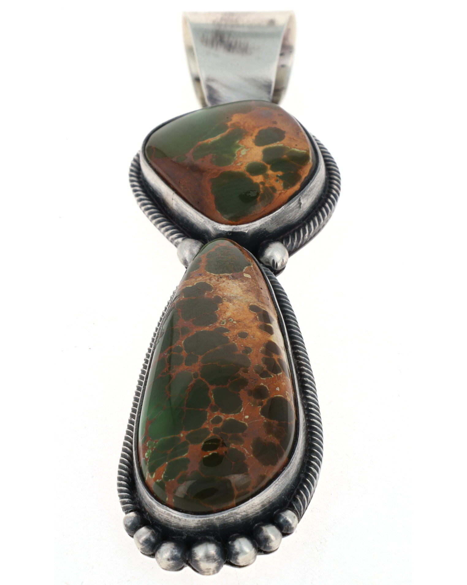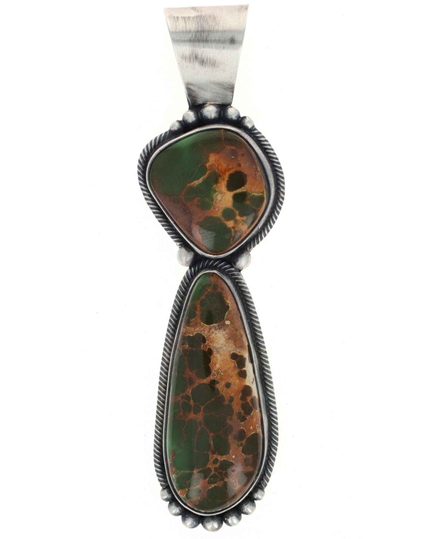 "Old Style" Sterling Silver Pendant Set With Two High Grade Natural Royston Turquoise Stones.  Masterfully Handmade And Designed By Navajo Artist LORETTA DELGARITO.