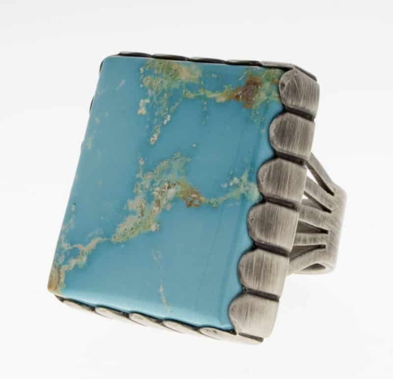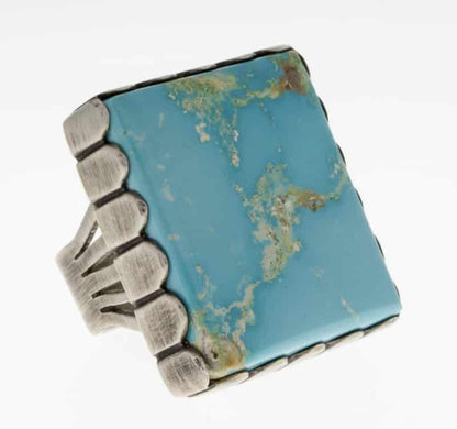 Size 9.5 "Old Style" Sterling Silver Ring Set With A High Grade Natural Royston Turquoise Stone Mined Circa During The 1980's Period.  Masterfully Handmade And Designed By Navajo Artist Ella M. Linkin.