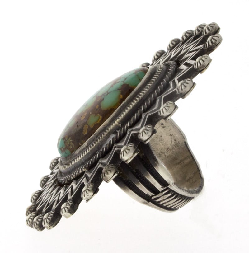 Size 8.75 "Old Style" Ingot Sterling Silver Statement Ring Set With A High Grade Natural Royston Turquoise Stone.  Masterfully Handmade And Designed By Navajo Artist CALVIN MARTINEZ.