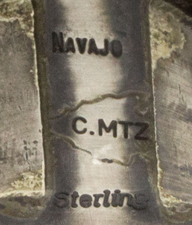 • Artist Hallmark:   "C. MTZ, Navajo" (hand stamped on back side in between opposing ends of ring shank)