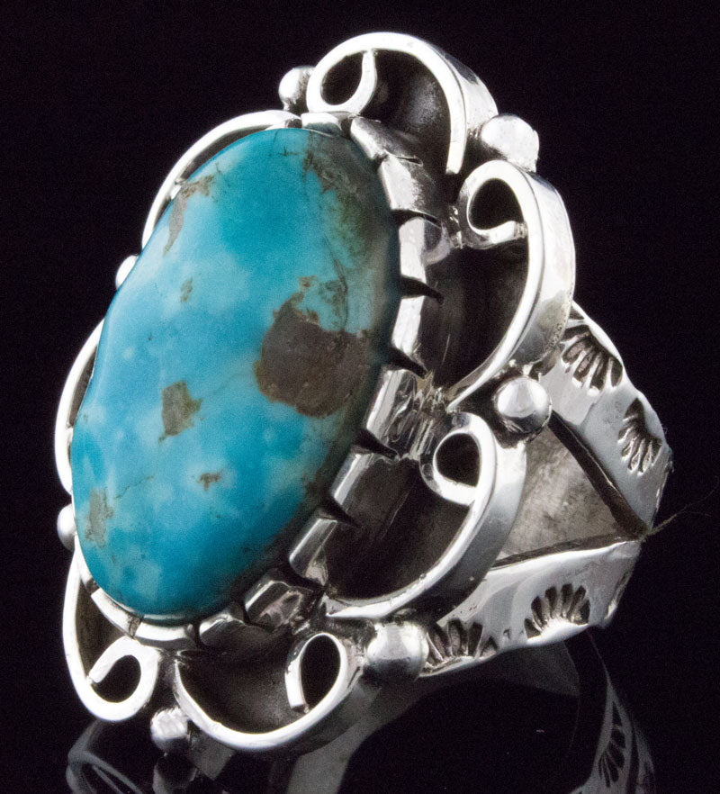 Size 8.25 Sterling Silver Ring Set With A Kingman Turquoise Stone.  Masterfully Handmade And Designed By Navajo Artist MERLE HOUSE.