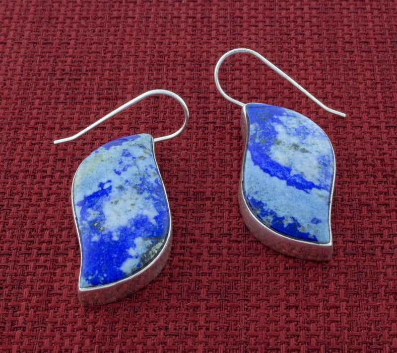 Sterling Silver French Wire Earrings Each Set With A Lapis Lazuli Stone.  Masterfully Handmade And Designed By Navajo Artist SAMPSON JAKE.
