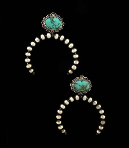 Post-Dangle "Old Style" Sterling Silver Bead Naja Earrings Each Set With A Kingman Turquoise Post.  Masterfully Handmade And Designed By Navajo Artist  RAYMOND CORIZ.