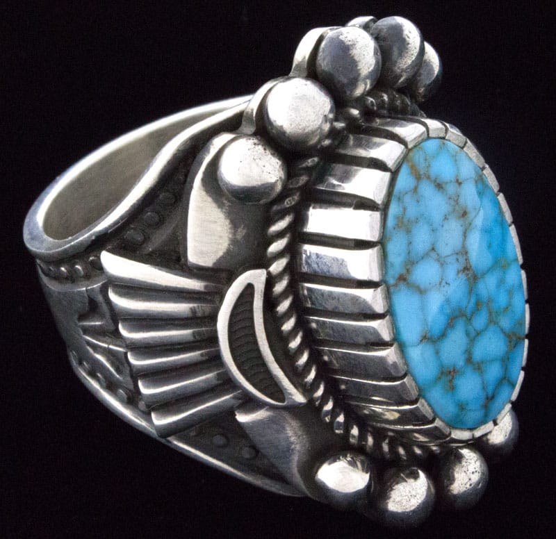 • Artist Hallmark:   "A. JAKE, HBH" (denoting "Heavy By Hand" design) - hand stamped on back side of ring shank.