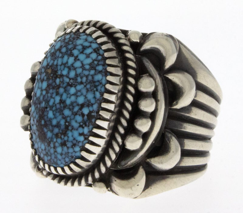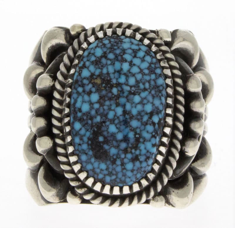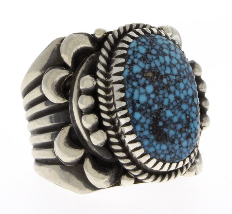 Size 12.75 "Old Style" Sterling Silver Ring Set With A Natural Birdseye Kingman Turquoise Stone.  Masterfully Handmade And Designed By Navajo Artist DELBERT GORDON.