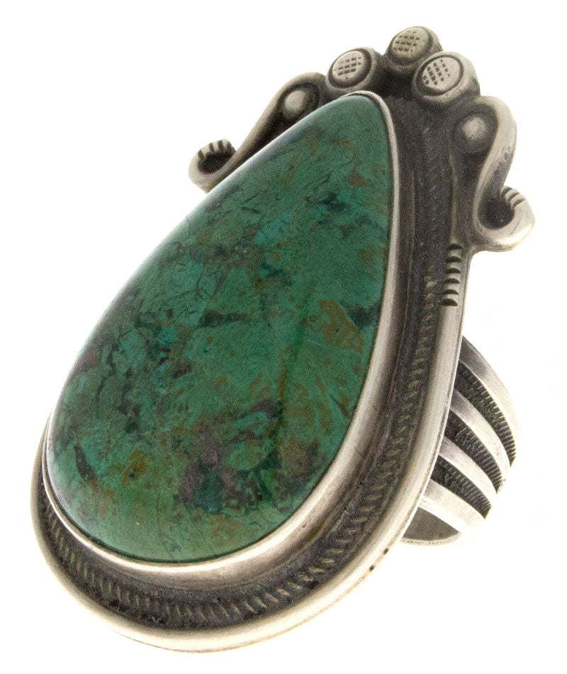 Size 9.25 "Old Style" Ingot Sterling Silver Ring Set With A Natural Bisbee Chrysocolla Stone.  Masterfully Handmade And Designed By Navajo Artist CALVIN MARTINEZ.