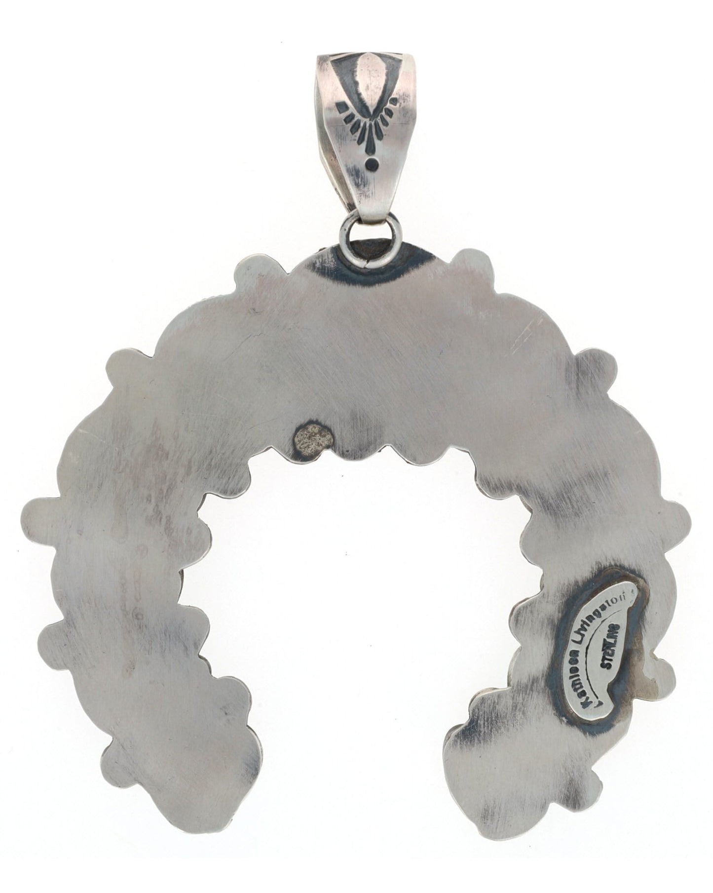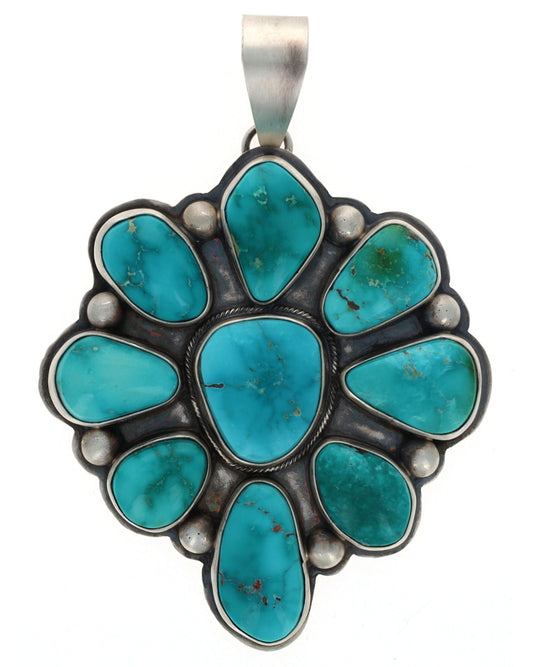 "Old Style" Sterling Silver Naja Pendant Set With 11 RARE Natural Bisbee Turquoise Stones Of Various Shapes And Sizes.  Masterfully Handmade And Designed By Navajo Artist KATHLEEN LIVINGSTON.