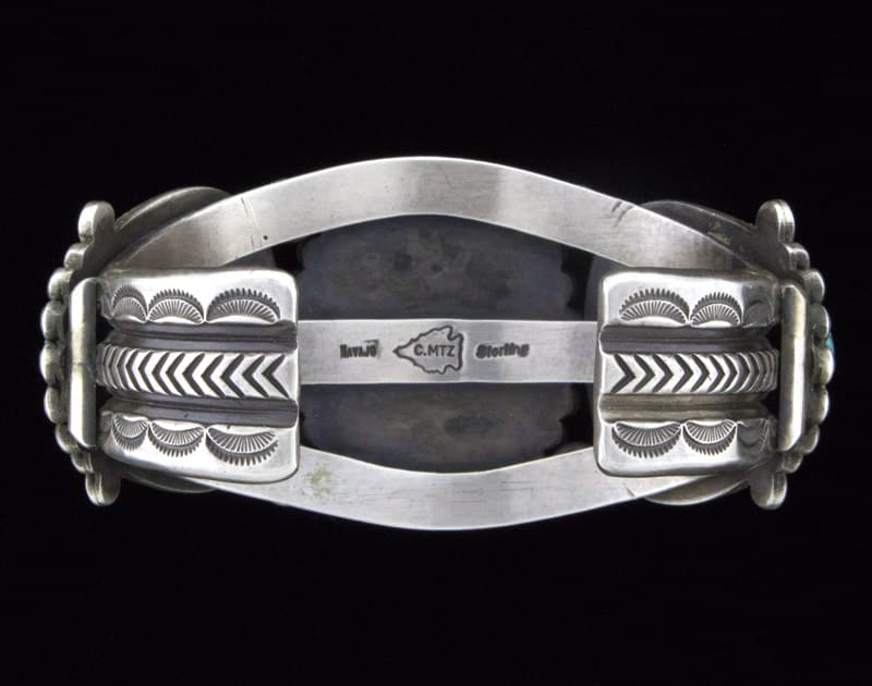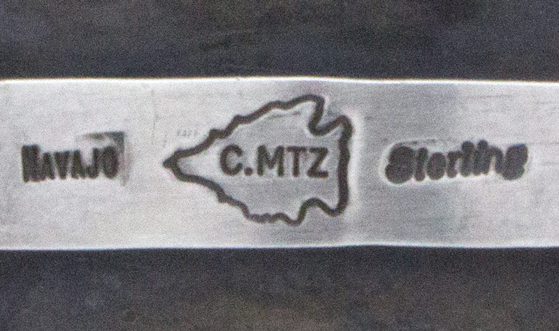 • Artist Hallmark:  "C. MTZ, Navajo"  (hand stamped on back side of bracelet)