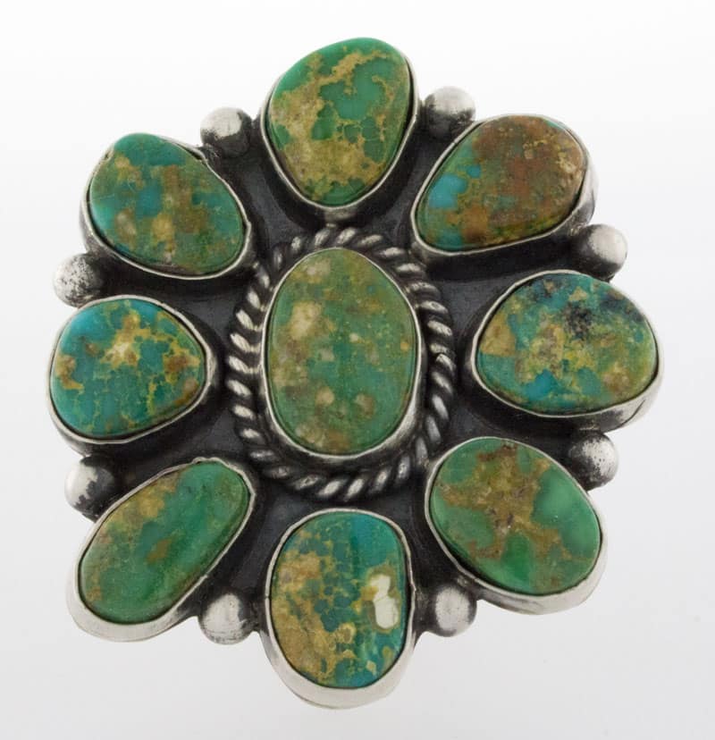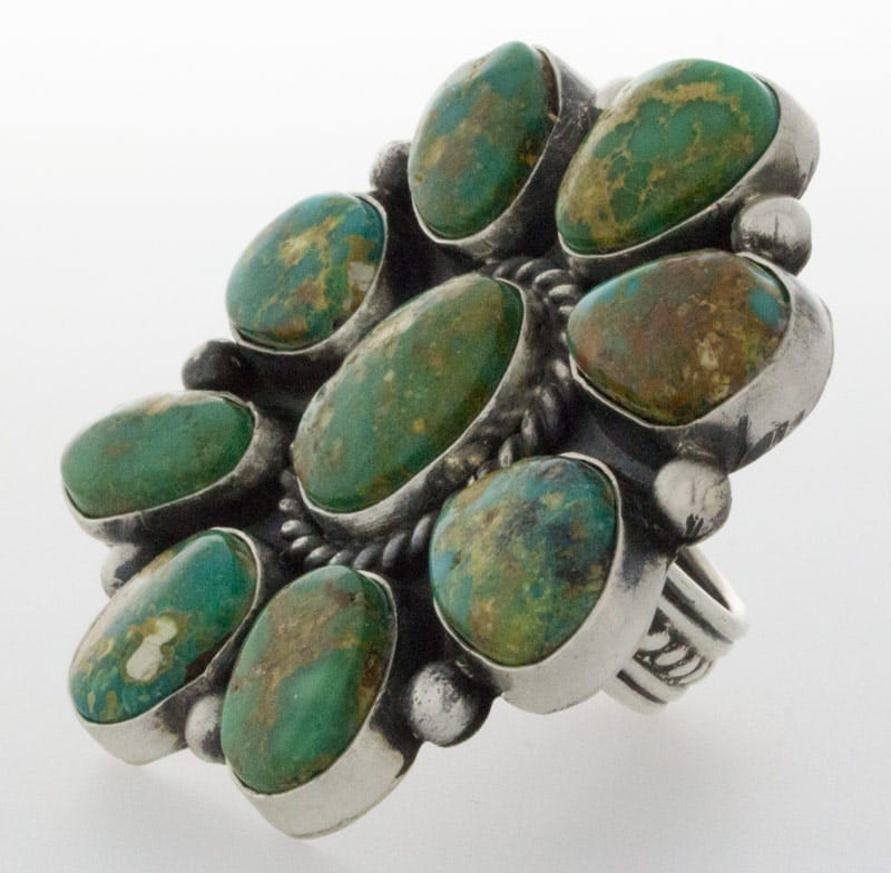Size 8.25 Sterling Silver Ring Set With A Cluster Of 9 RARE Natural Blue Gem Turquoise Stones. Masterfully Handmade And Designed By Navajo Artist TYLER BROWN.