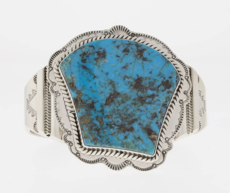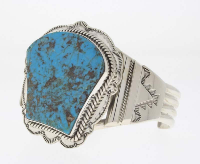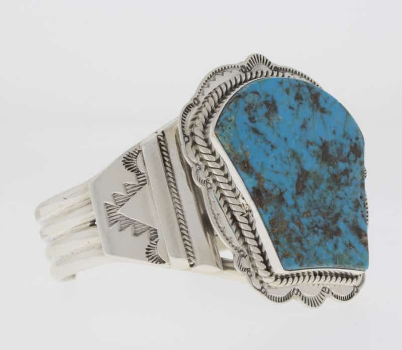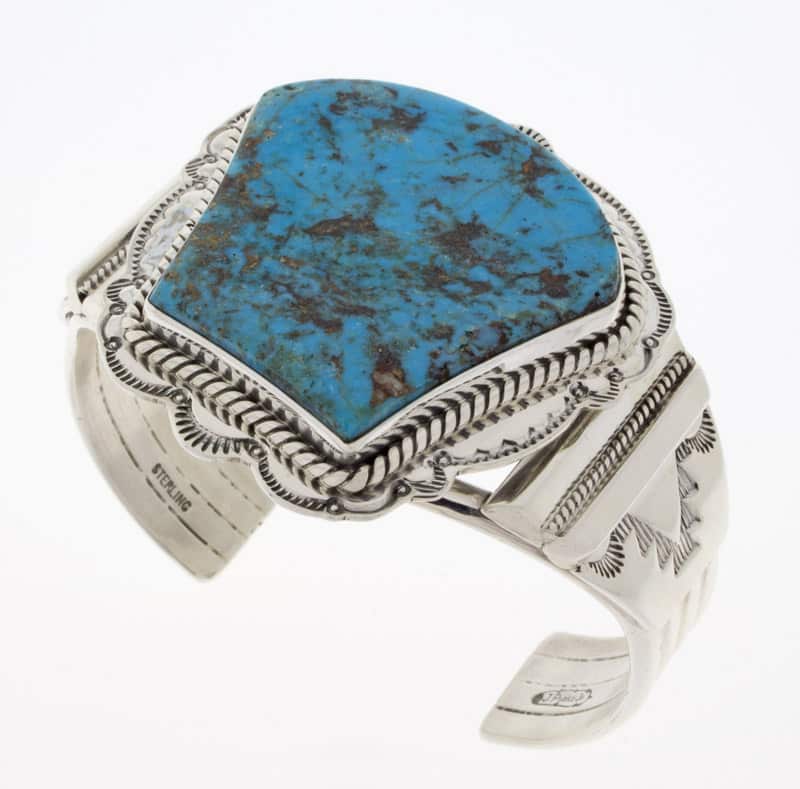 Sterling Silver Bracelet Set With An Impressive Natural Candelaria Turquoise Stone. Masterfully Handmade And Designed By Navajo Artist JOE PIASO, JR.