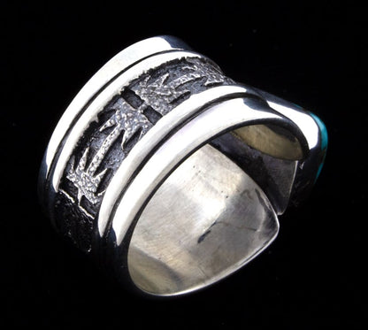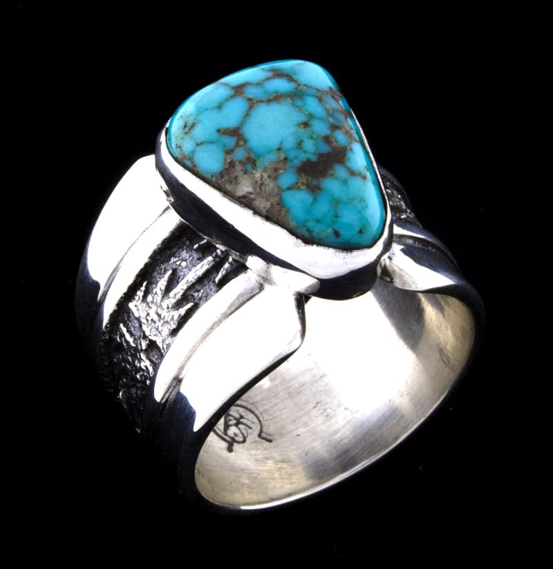Size 7.75 Sterling Silver Ring Set With A Natural Cripple Creek Turquoise Stone. Masterfully Handmade And Designed By Navajo Artist AL JOE.