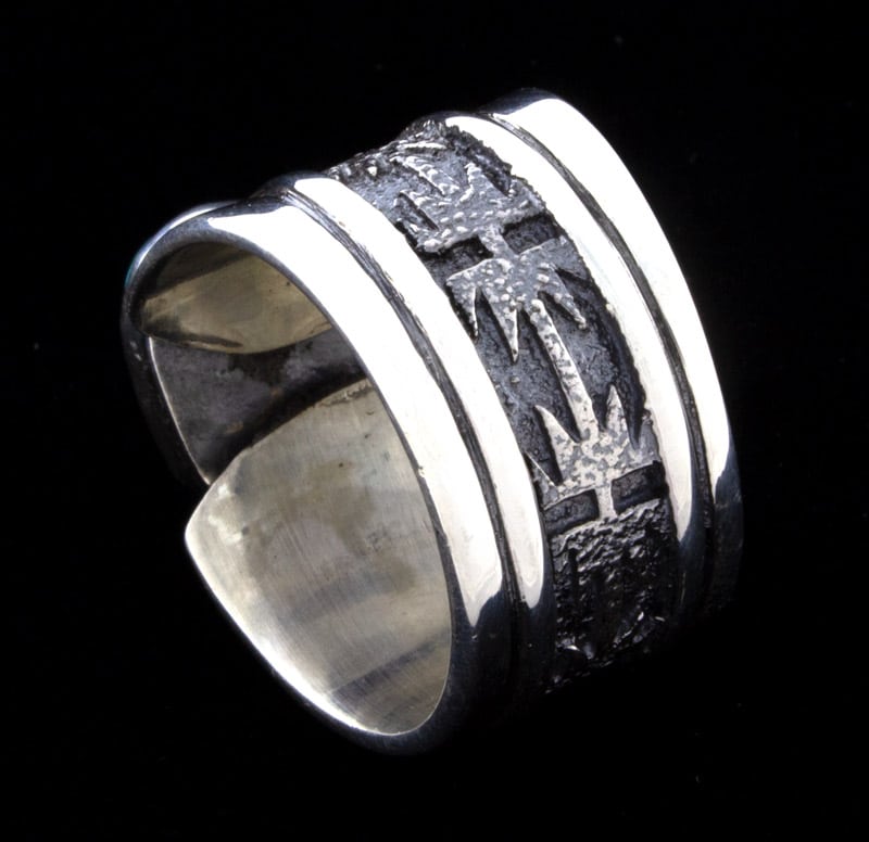 • Artist Hallmark:   "A J" (hand stamped with artist's personal horseshoe insignia on back side of ring shank)