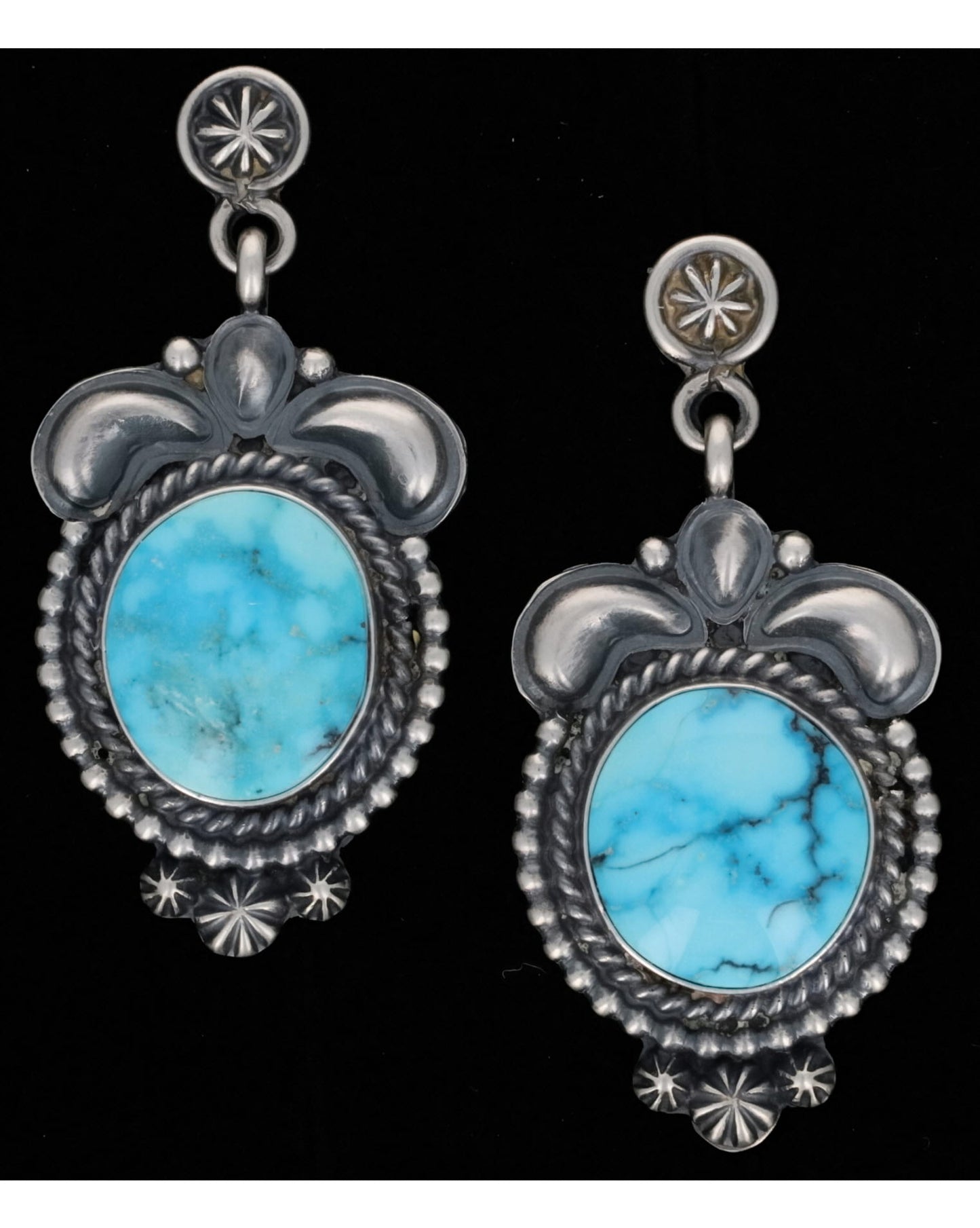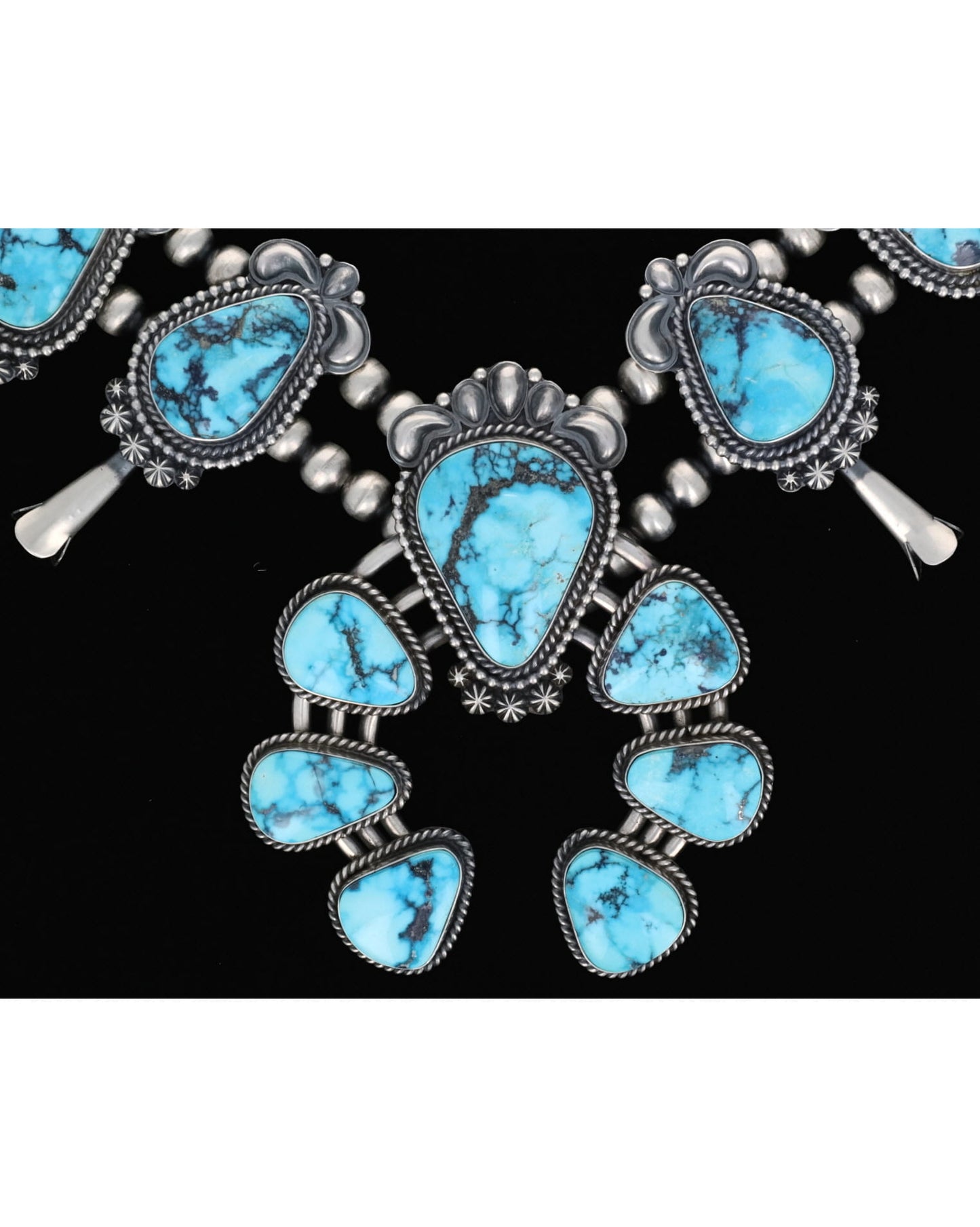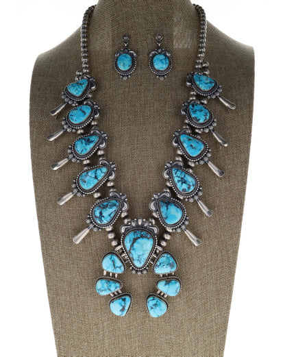 Natural Ithaca Peak Turquoise Squash Blossom Necklace With Matching Earrings