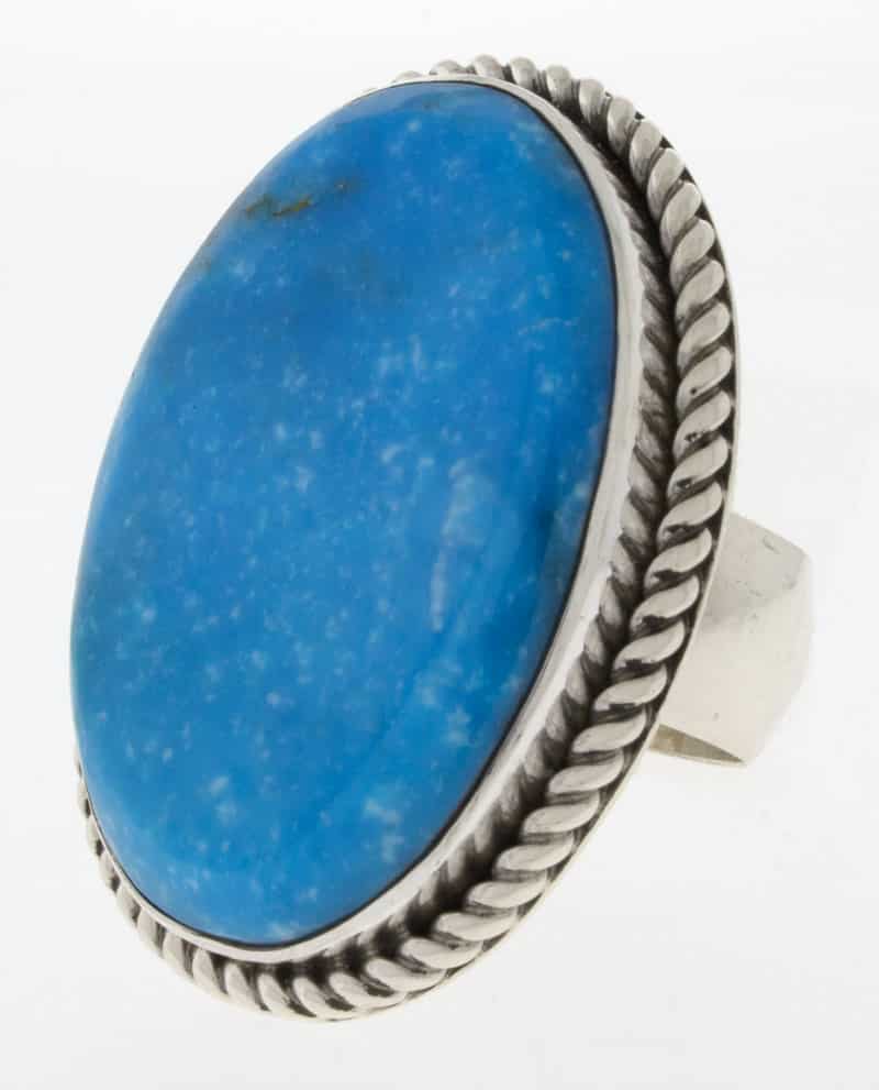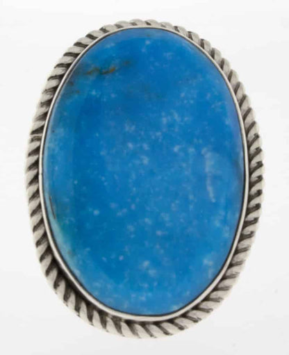 Size 13 Sterling Silver Ring Set With A Natural Kingman Turquoise Stone. Masterfully Handmade And Designed By Santo Domingo Pueblo Artist DANIEL CORIZ.