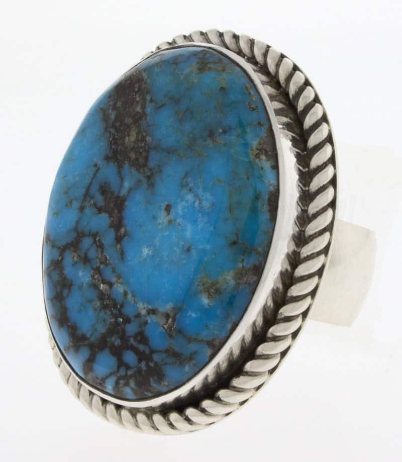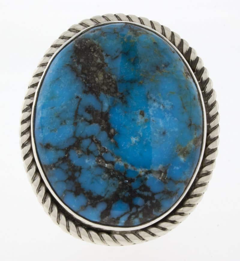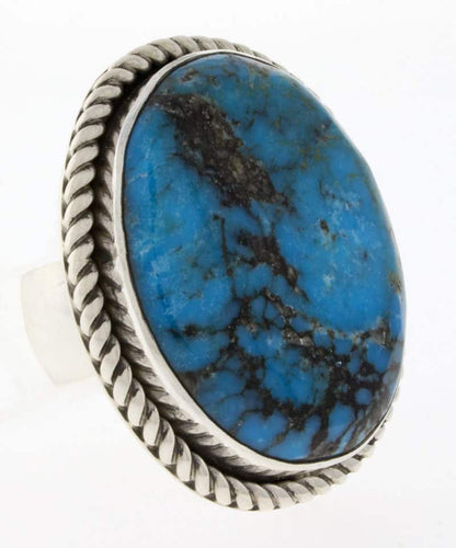 Size 11.25 Sterling Silver Ring Set With A Natural Kingman Turquoise Stone. Masterfully Handmade And Designed By Santo Domingo Pueblo Artist DANIEL CORIZ.