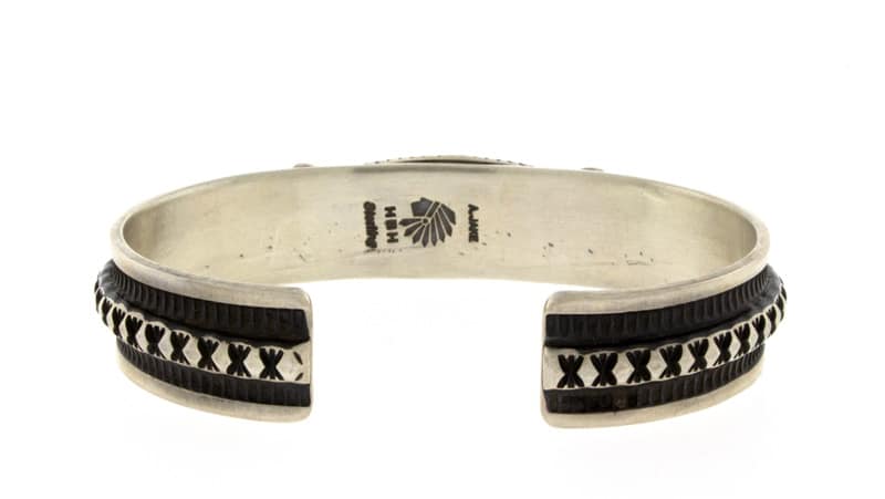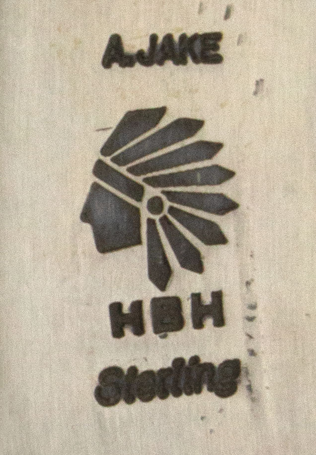 • Artist Hallmark:  "A. JAKE, HBH" (denoting "Heavy By Hand" design) hand stamped on back side of bracelet.